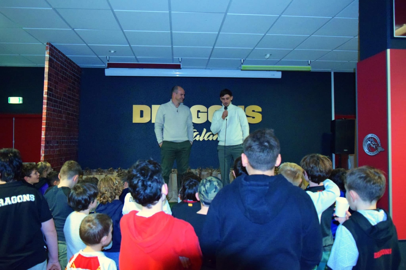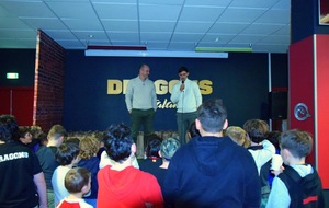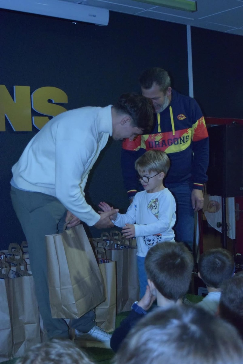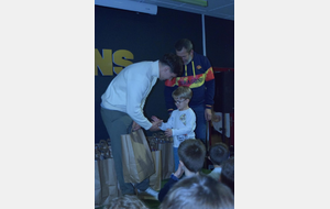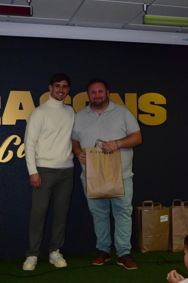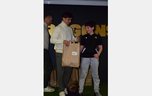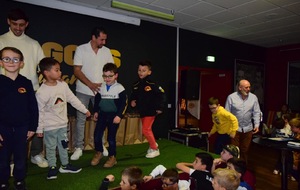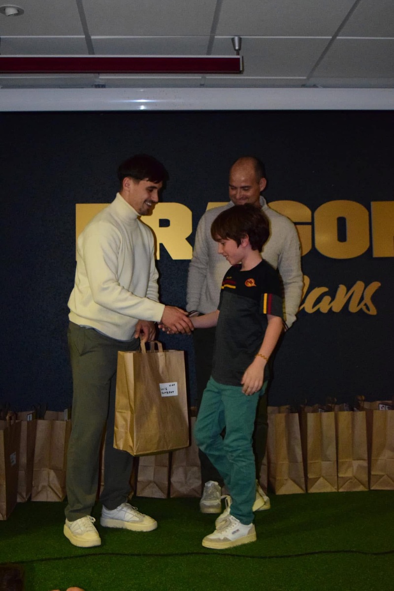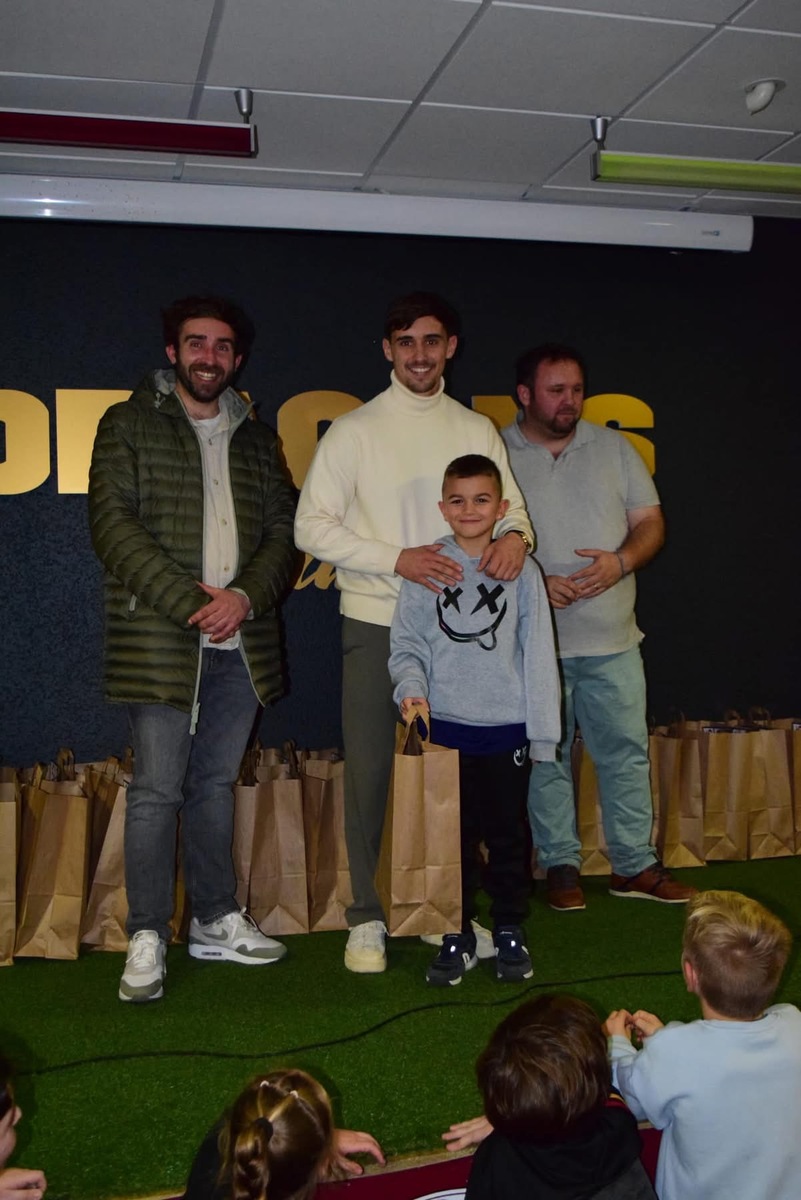 Les enfants ont vécu un moment inoubliable grâce à la présence de notre parrain de club Arthur Mourgue, joueur des Dragons Catalans, qui leur a remis avec enthousiasme les joggings officiels du club.