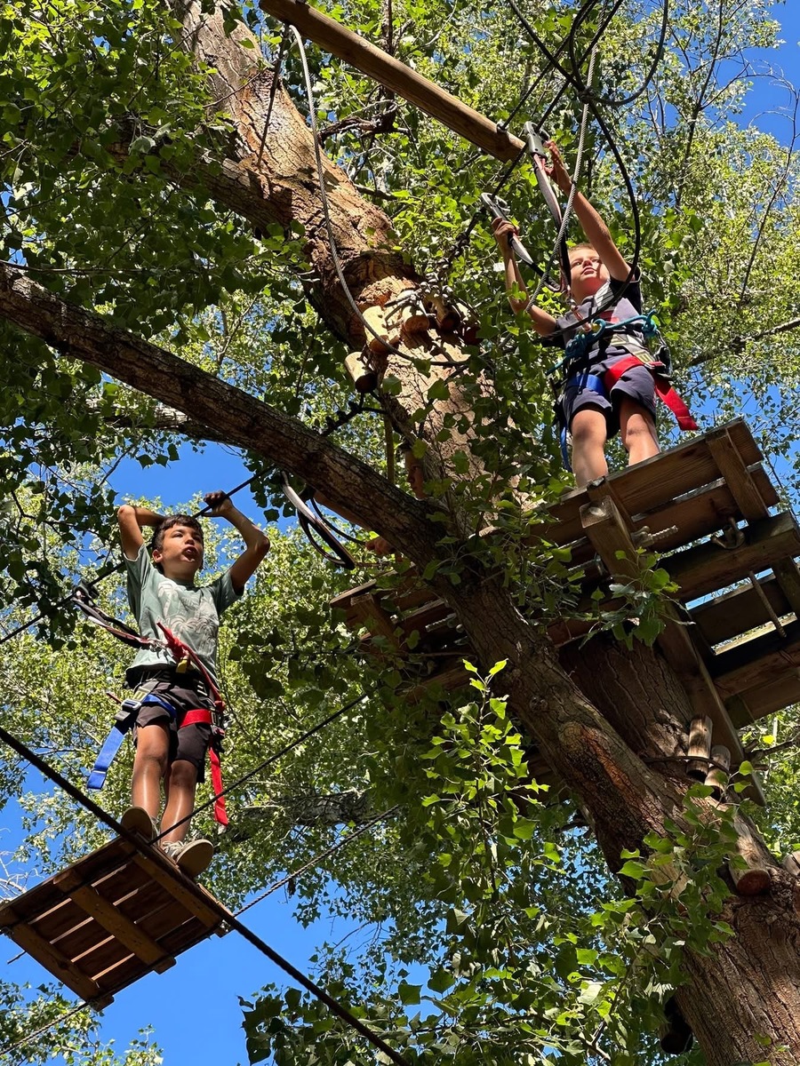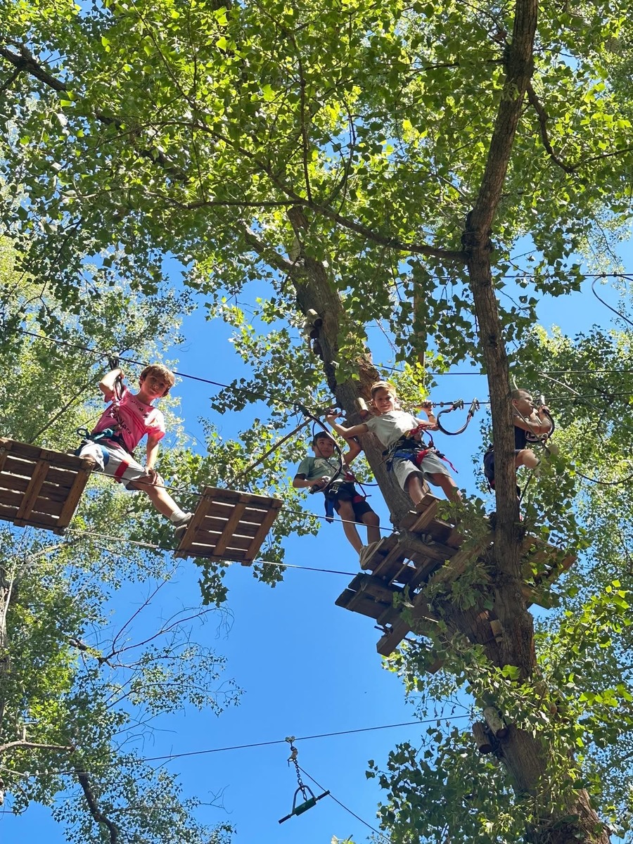 Le matin, les enfants ont grimpé dans les arbres lors d’un parcours d’accrobranche à travers le parc boisé. Sensations garanties et grands sourires au rendez-vous ! 😄🧗♂️🌳