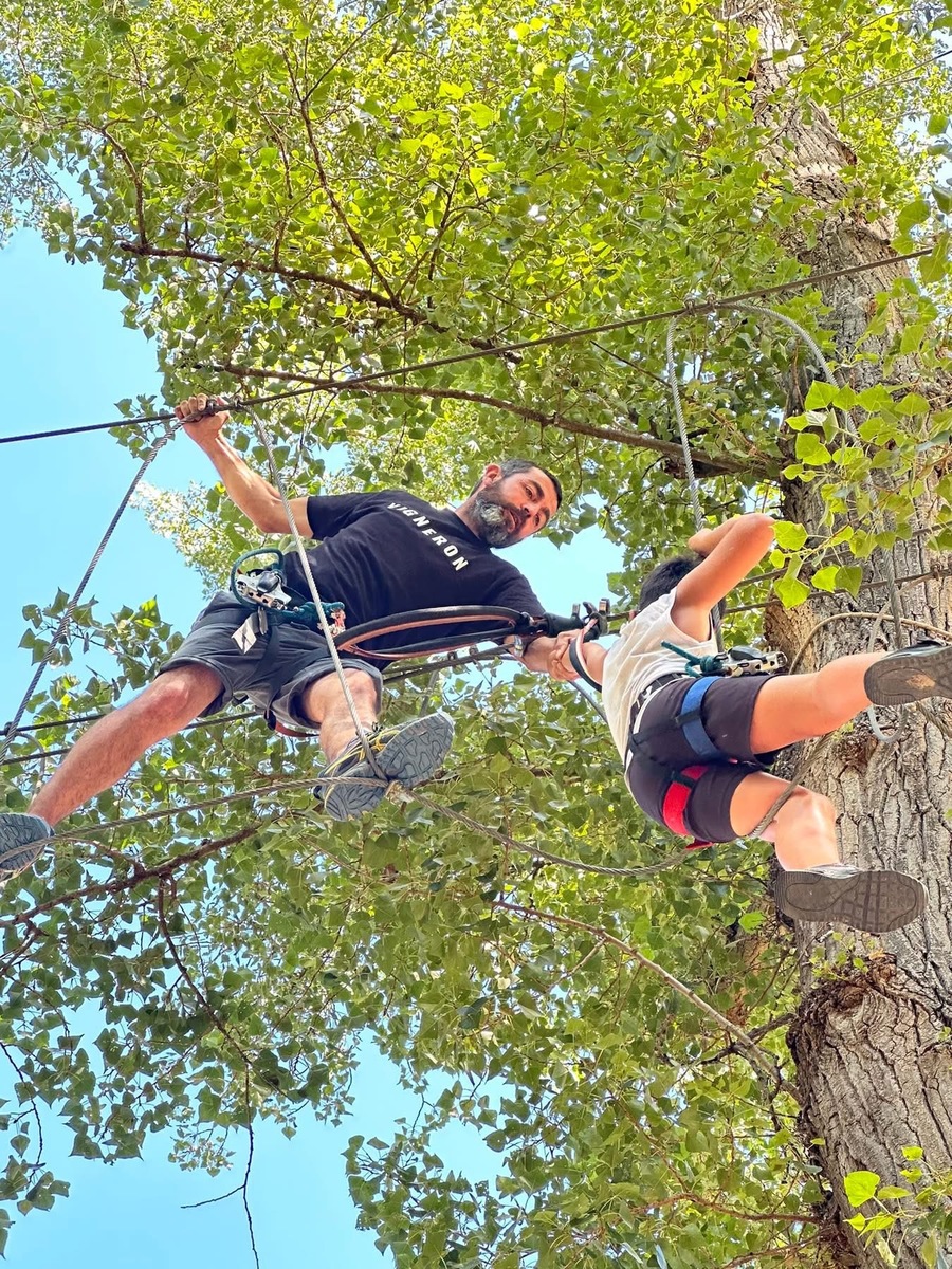 Le matin, les enfants ont grimpé dans les arbres lors d’un parcours d’accrobranche à travers le parc boisé. Sensations garanties et grands sourires au rendez-vous ! 😄🧗♂️🌳